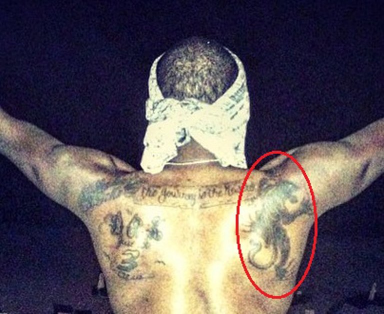На лявото рамо гардът има татуиран знака Хамса - близкоизточен символ на защита от злото око, който също дава сила и носи късмет.
