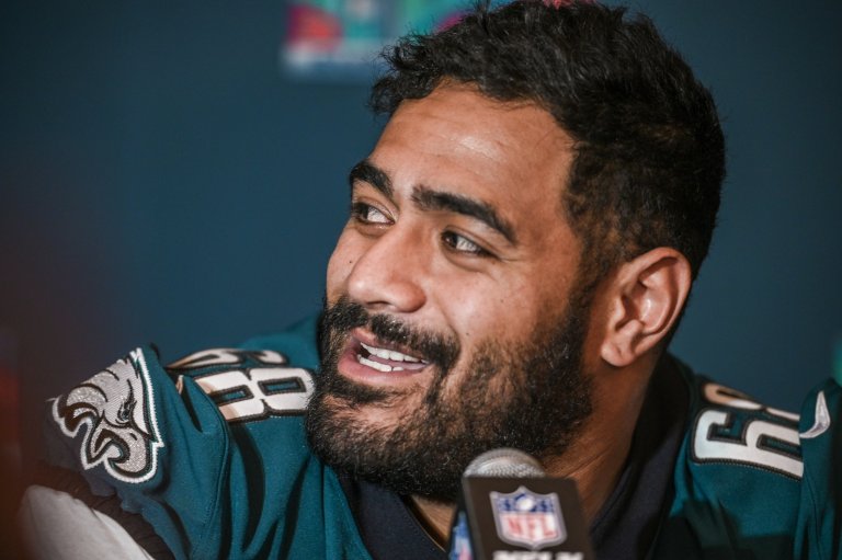 И една различна, наистина уникална история в цялото пълно с истории шоу. Джордан Майлата е част от плашещата офанзивна линия (онези, които бранят куотърбека) на Филаделфия. Огромният човек - 203 сантиметра висок, тежащ 166 килограма, плачеше като дете преди две седмици, когато отборът му би Сан Франциско и се класира за финала.
