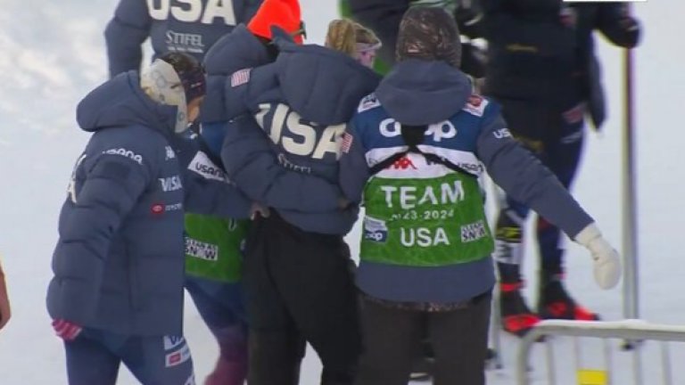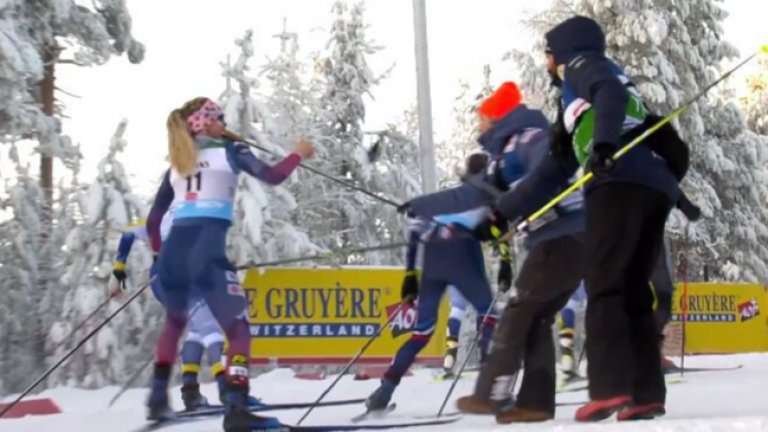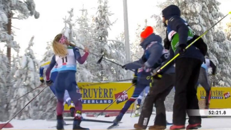 Студът в Рука бе вцепеняващ. Минус 18-те градуса жилеха всяко оголено месо, затова помощниците край пистата побързаха да подадат нова щека на американката.