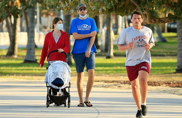 Екипи от Белгия (KU Leuven) и Холандия (TU Eindhoven) са направили проучване, според което разходката, бягането и колоезденето са безопасни само на значително разстояние един от друг. Сега в повечето страни по света се препоръчва дистанция от 1.5-2 метра, но както се оказва, това работи само на закрито и навън при тихо време.