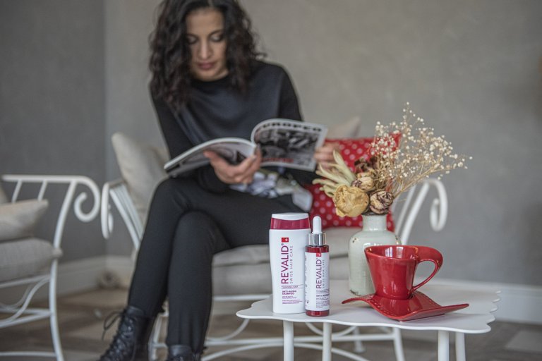"Всекидневното третиране със сeшоар или с маша изисква да ѝ даваш най-доброто, за да се съхрани в най-добрия си вид. Преди години в един момент страдах от сериозен косопад и тогава си дадох сметка, че трябва с особено внимание да подбирам продуктите, които ползвам. Наскоро открих новата anti-aging серия на Revalid и съм изключително доволна от резултатите. Косата ми е плътна, бляскава и обемна, точно каквато искам да бъде. А за моя приятна изненада, флуидът успя да ми реши стар проблем - тъй като съм леко алергична към боята за коса, скалпът ме сърбеше неприятно и почти непрекъснато. Е, вече го нямам този проблем, което е супер", казва Деси.