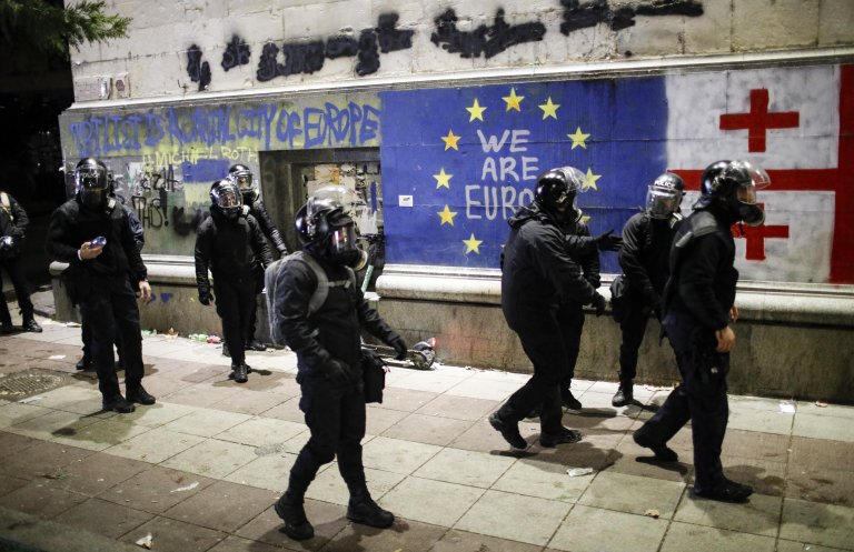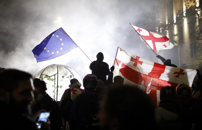 И въпреки широките проевропейски настроения в страната, на 28 ноември премиерът Иркали Кобахидзе обявява, че Тбилиси замразява преговорите за членство за четири години.