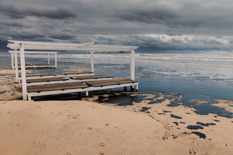 На 17 декември, разказва за "Дойче Веле" собственичка на хотел, служителите ѝ усещат силна миризма от морската вода. Когато отиват до брега, виждат, че водата е почти изцяло черна от мазут.
