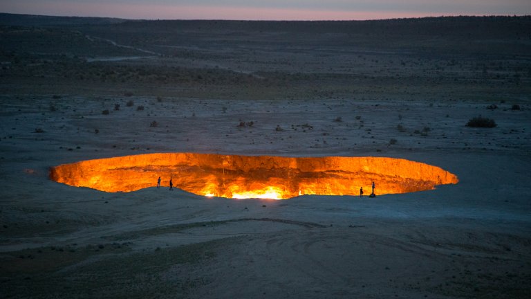 Възможно е Туркменистан да не ви говори нищо или да се сещате само за факта, че е бивша съветска република. Такава е. Сред останалата част от света е най-известен обаче с две неща: със златните статуи из столицата си Ашхабат и с "Вратата към ада" - газовият кратер Дарваза, който гори от 50 години.
