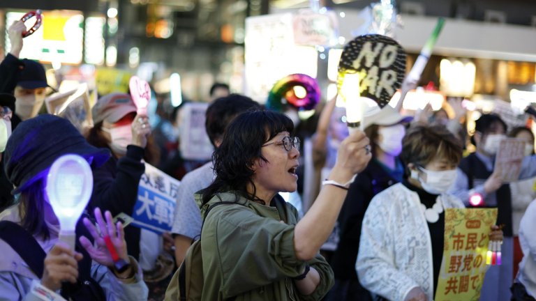 36 000 души се събраха на последния протест пред парламента в Токио срещу желанието на управляващите за промяна на пацифисткия текст в конституцията. Демонстрации се организират всеки месец, и тази през април е най-масовата. Сериозна част от протестиращите са млади хора, родени много след събитията, наложили мирния обрат в политиката на иначе изключително агресивната по време на Втората световна война Япония.