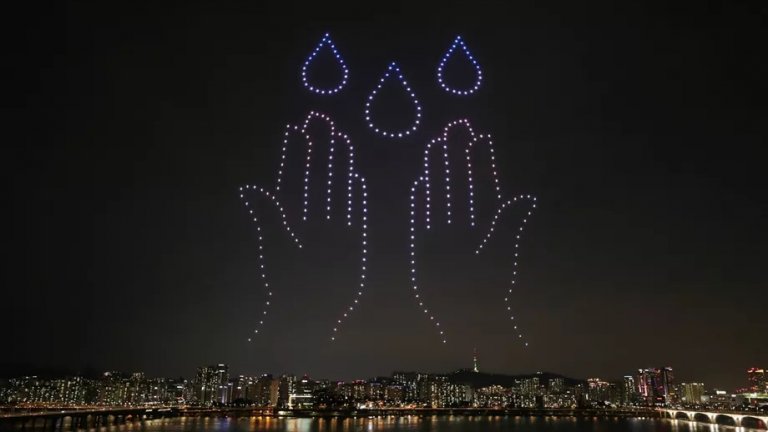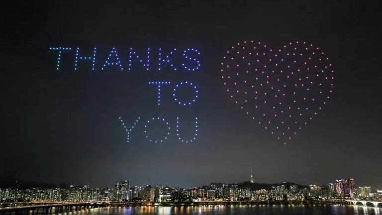 Като например светлинно шоу с над 300 дрона, които изпълняват различна хореография в небето над Сеул.