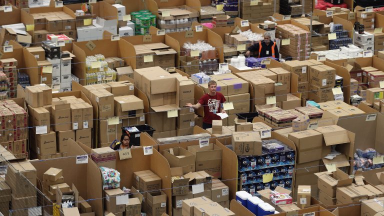 Работещите в центровете за дистрибуция дори трябва да носят устройства, които следят всяко тяхно движение, а всяка почивка над 5 минути може да доведе до уволнение. И доста от тях твърдят, че нямат време дори да отидат до тоалетна и уринират в бутилки от вода, за да смогнат с нормата.