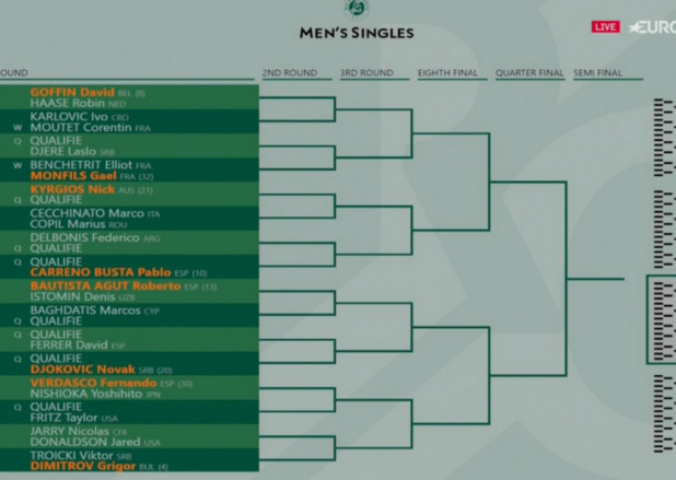 Добрата новина за Григор е, че не е в потока на Надал, но там е Новак Джокович, който евентуално ще го очаква на 1/8-финалите.