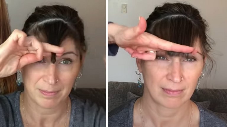 Дръжте края ѝ между показалеца и средния пръст и отнемете с ножица сантиметър-два, следвайки досегашната ѝ линия успоредно на пръстите. След това поставете ножицата леко под ъгъл и вземете по няколко милиметра, за да не изглежда като "отсечена".