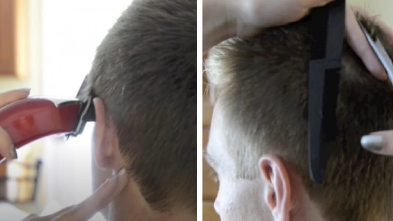 За къса коса, стандартен тип мъжка подстрижка, е най-добре да "оберете" внимателно с машинка покрай ушите и врата.
