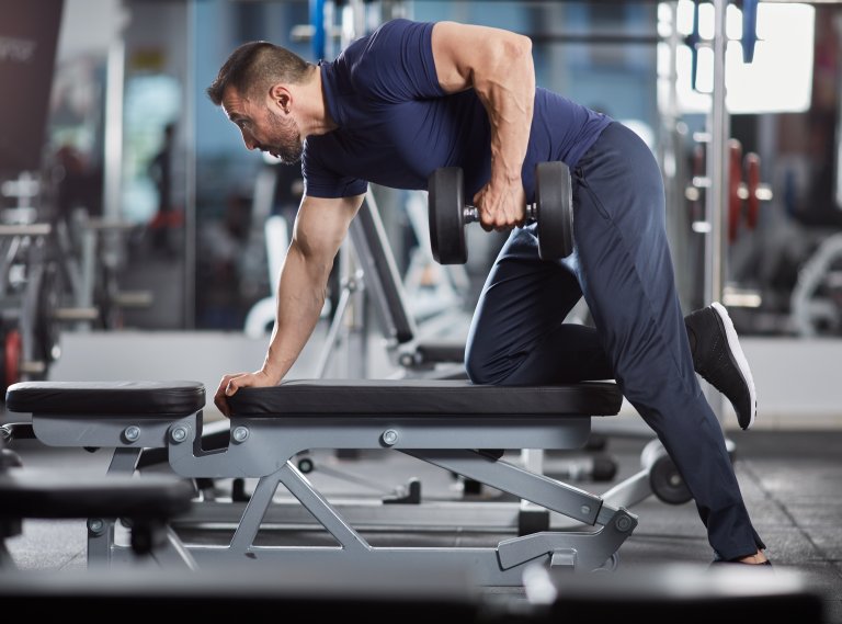 Гребанията във всички вариации - с дъмбел с една ръка, с лост или на скрипец - работят не само за гърба и задното рамо, но и за ръцете. Това важи, най-вече ако ги правите с подхват или неутрален хват и в дълги серии с повече повторения.