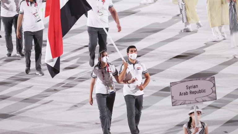 Видяхме истински легенди да развяват флаговете на своите страни, но когато малката, 6-членна сирийска делегация се появи на стадиона, веднага се забеляза една сериозна разлика.
