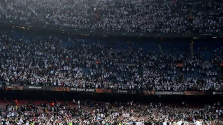 Реваншът между Барселона и Айнтрахт на "Камп Ноу" в турнира Лига Европа беше изгледан на живо от почти 80 хиляди зрители. 50 от тях бяха привърженици на домакините, а над 30 - на гостите от Франкфурт.