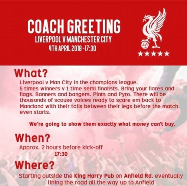 Идеята е ясна - в тесните уличики край "Анфийлд" да се вземе страхът на Пеп Гуардиола и момчетата му още преди да са стъпили на терена.