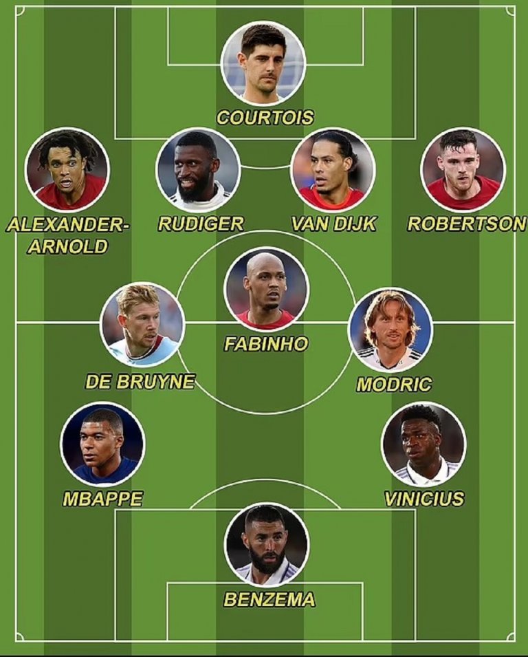 Шампионът Реал Мадрид и финалистът Ливърпул имат по равен брой полеви футболисти в тима - по четирима. Но вратарят също е от "кралете", с което играчите на испанския тим в класацията стават петима.