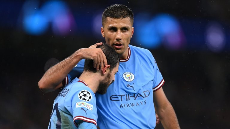 През първото полувреме големият сблъсък предложи напрегната тактическа битка с подчертано предимство на домакините от Сити.