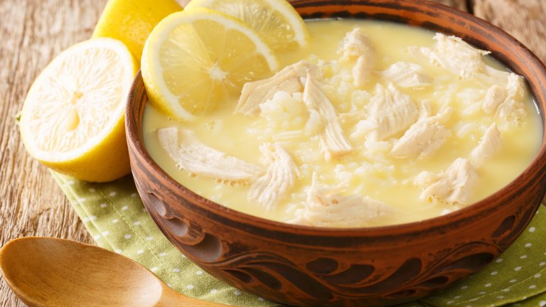 На гръцки се нарича "авголемоно" - на соса от яйца и лимон, характерен за ястието, и е малко по-различна от обичайната пилешка супа в България. Засища чудесно и дава усещането за уют, което само пилешка супа може да даде.