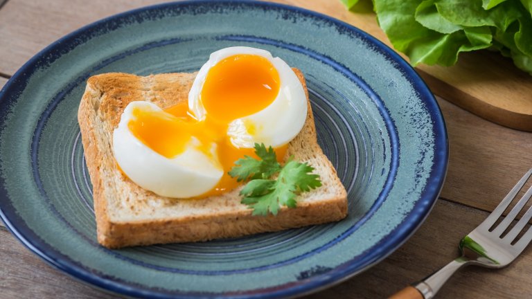 Яйцата са богати на хранителни вещества, с много протеин, витамини и минерали, а ако са сварени съдържат и само 75 калории. Препечена филийка пълнозърнест хляб с едно варено яйце и резен домат или маруля може да прогони глада за доста дълго, при около 170 калории.