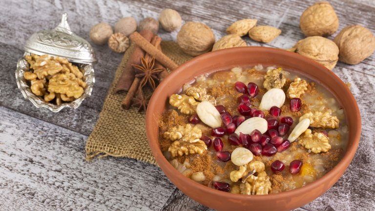Това един от най-старите десерти на света и е известен и като кремът на Ной. Легендата гласи, че е измислен, когато библейският ковчег стига до планината Арарат, а сладкишът е направен от остатъците от храната в него.