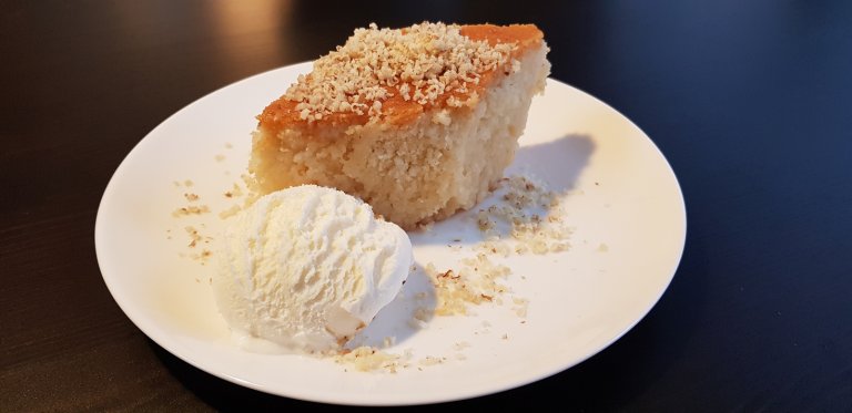 И тук спазваме принципа, според който студеният вече сладкиш се залива с горещ сироп. Оставяме Басбуса да се охлади на стайна температура и след това - за една нощ в хладилника.