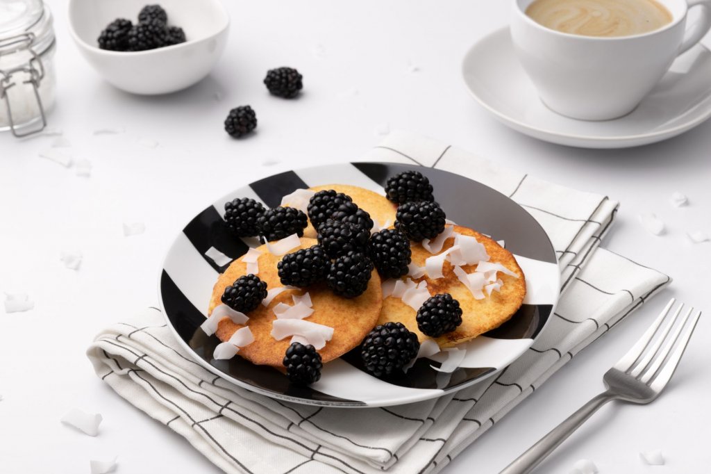 Запичаме на много сгорещен сух тиган и хапваме с любимите си добавки - плодове, сосове, кокосови стърготини. О, и си допиваме кафето, все така без да бързаме.