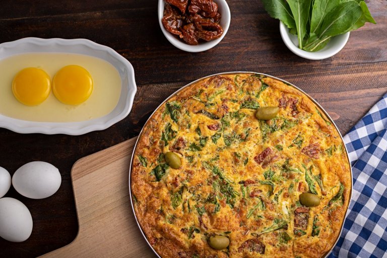 Когато спагетите се сварят, отцедете водата и ги сложете в същия термоустойчив съд с останалата 1 с.л. масло. Бъркайте, докато маслото не се разтопи напълно и покрие пастата. Към нея изсипете яйчената смес и разклатете леко съда, за да се разпредели равномерно. Преместете ястието във фурната и печете около 25-30 мин. Ще познаете, че фритата е готова, когато придобие златист цвят.