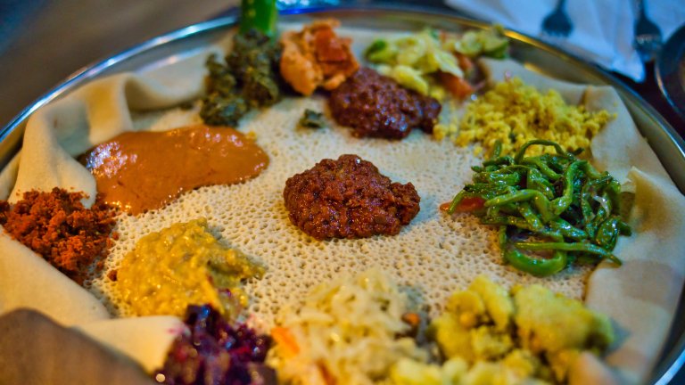 Въпреки че има доста рецепти с месо, освен подправките, другата изключително характерна част от етиопската кухня е, че тя е основно веганска, а вместо прибори се използва хлябът инджера, с който се взема храната.