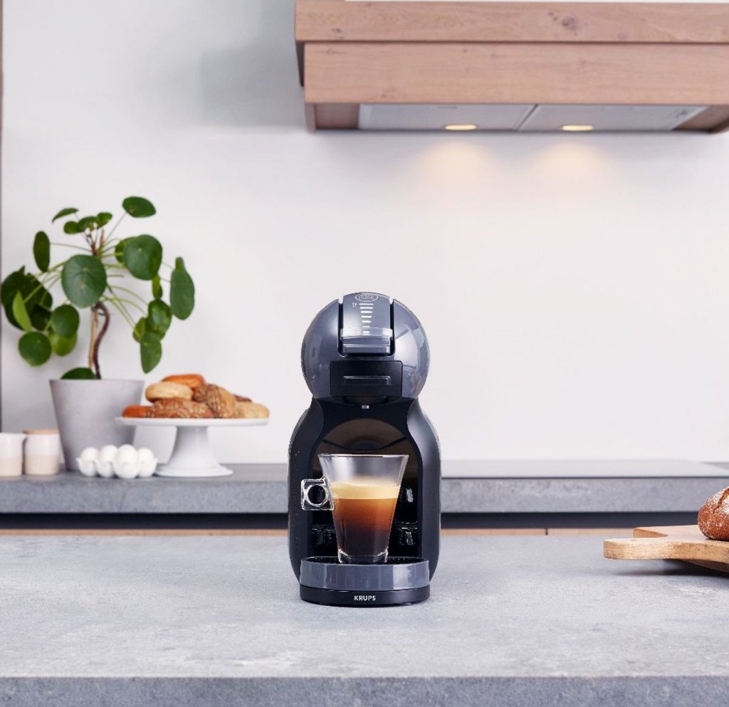 Кафе машина с меки заоблени линии като KRUPS® NESCAFÉ® Dolce Gusto Mini Me е в центъра на вниманието като част от визията на старинно кафене - върху мини кръгла или помощна масичка, стабилна табуретка или отоман.