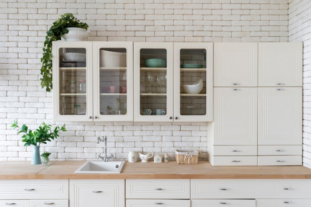 Съвременен интериор с изчистени линии, където кафе машината е разположена в стилна кухня. Бели или нюансирани стени, комбинирани с натурални материали като дърво или мрамор, създават елегантна обстановка.
