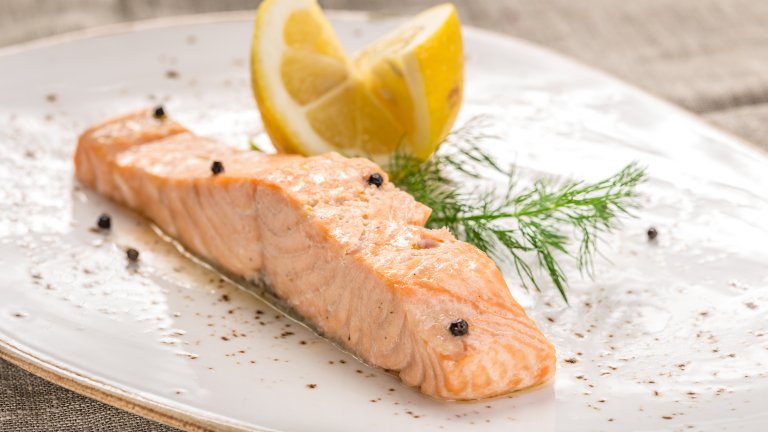 Гответе за 3,5 мин. Проверете с вилица дали сьомгата е сготвена и ако се налага я върнете във фурната за още 30-45 секунди.