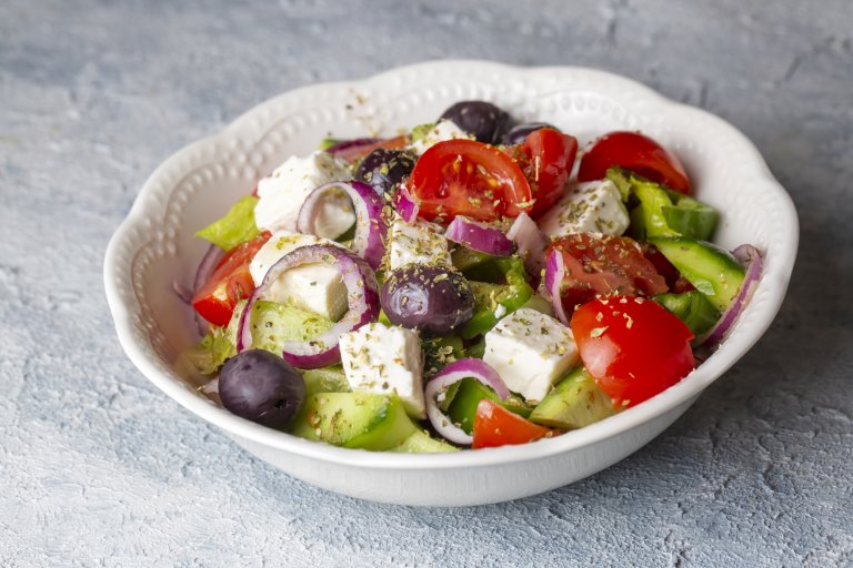 Заместваме фетата с родно саламурено сирене, слагаме много малко риган или въобще го пропускаме и... накрая салатата няма вкуса на онази, която толкова ни е харесала из гръцките таверни.