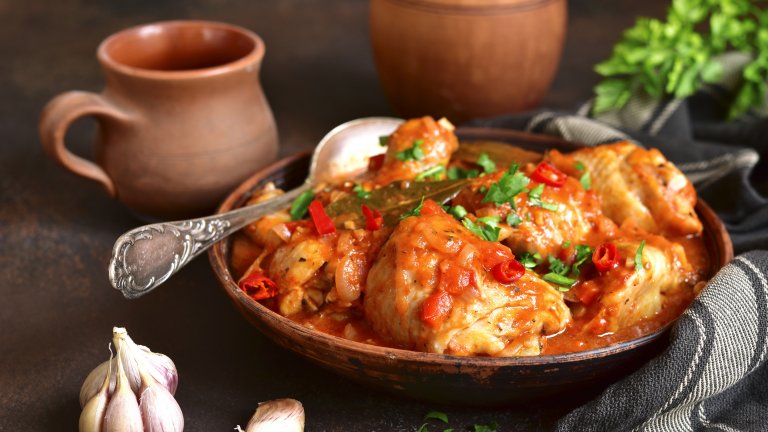 Първоначално това ястие се е приготвяло с фазан, но днес той е заменен от пиле. В основата му, освен месото, са доматите и лукът, добавят се и кориандър, риган, чесън и миксът хмели сунели - сушени подправки. Всичко това се задушава в чугунен съд.