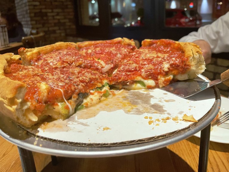 Пицата от Чикаго по-скоро прилича на солен пай, защото се прави в дълбока тава. Плънката е щедра и изобилна, а яденето с ръце е невъзможно.