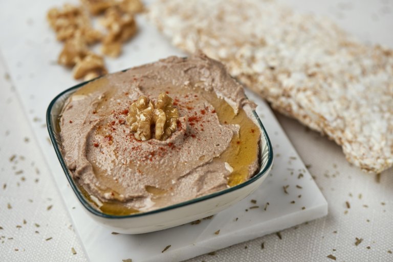 Чесънът и маслините се наситняват. В блендер се натрошава хлябът, а към него се добавят орехите, зехтинът, стръкът розмарин, маслините, чесънът, зехтинът, лимоновият сок и солта. Блендира се добре и се поднася в купички.
