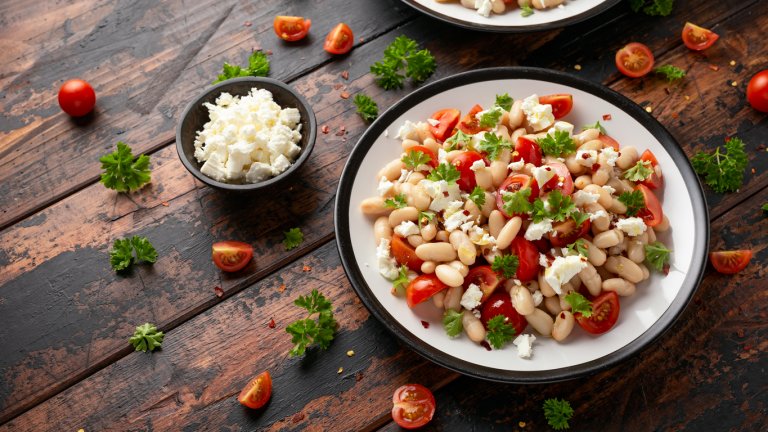 Една голяма консерва бял боб е от около 700-800 грама и може да осигури питателна салата, лека вечеря или обяд в кутия за следващия ден в офиса. В случая на боба ще придадем огромна доза свежест като го комбинираме с пресни съставки.
