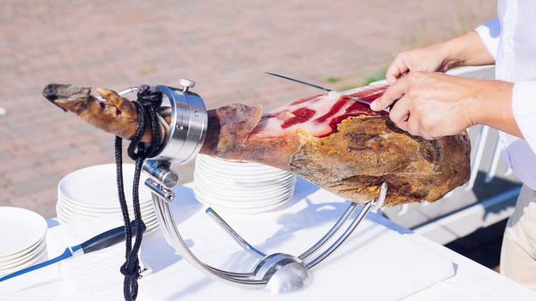 Хамониберико - деликатес, с който е известна Испания, също се прави от редки животни и изисква много време. Шунката е от бутовете на диви черни прасета, които се хранят с жълъди.