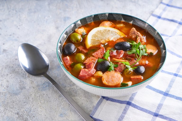 Всъщност, точно както и нашата шкембе чорба, и супата им против махмурлук - солянка - може спокойно да се превърне и в основно ястие. Тя е наситена с вкусове, силно солена, но и също толкова силно кисела, гъста и с изобилие от месо, в случая колбас или наденица.