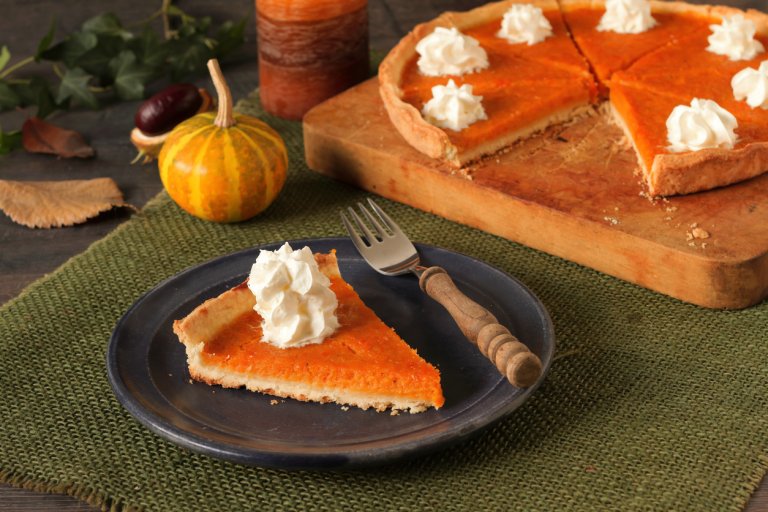 Американският тиквен пай се хвали с хрупкава тестена основа и богата сладка плънка с аромати.