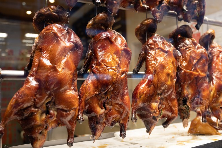 Витрините в китайските магазини и ресторанти вече са изпълнени със сочно изглеждащи печени пилета със златист загар.