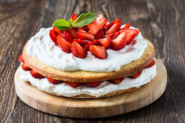 За декорация може да използвате пресни ягоди, които ще са и идеално свежо допълнение към сладостта на тортата.