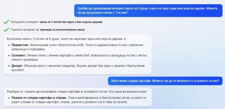 ИИ дава предложения, а след това ги съобразява с допълнителните насоки на потребителя.