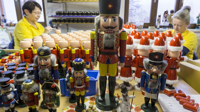 Миньорството в Рудните планини започва да запада през XVII век. Безкрайните гори по хълмовете обаче остават и миньорите се превръщат в дърводелци. Наред с обичайни предмети като столове и маси, те започват да правят и играчки. Така се появяват дървените лешникотрошачки, пушещите човечета, свещниците и пирамидите.