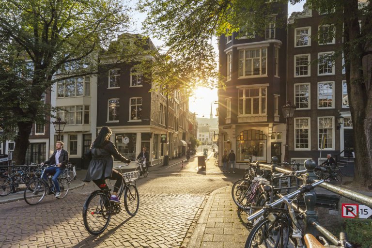 Амстердам - град, прочут с велоалеите си и активните си велосипедисти - също засилва усилията в насока още повече редуциране на автомобилния трафик.