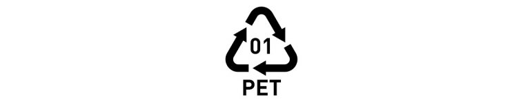 * PET (полиетилен терефталат) е пластмасата, която обикновено се използва за опаковки за еднократна употреба за вода, безалкохолни напитки и бира. Бутилките, изработени от PET материал, се разпознават по следния знак, разположен от външната страна на бутилката: