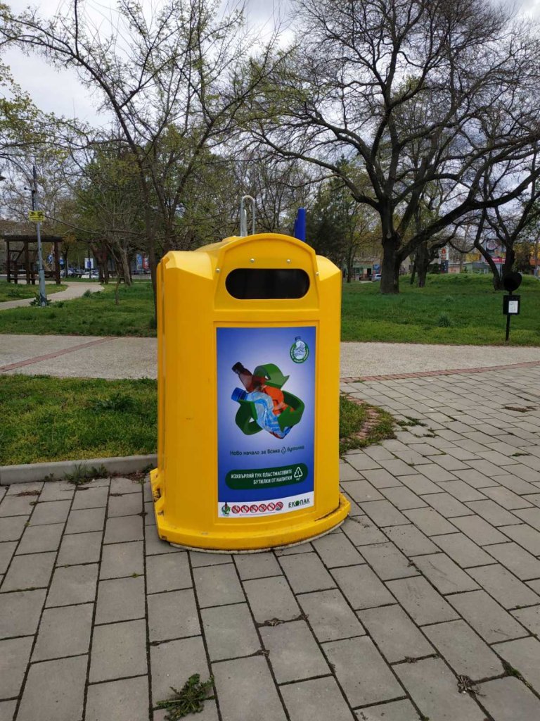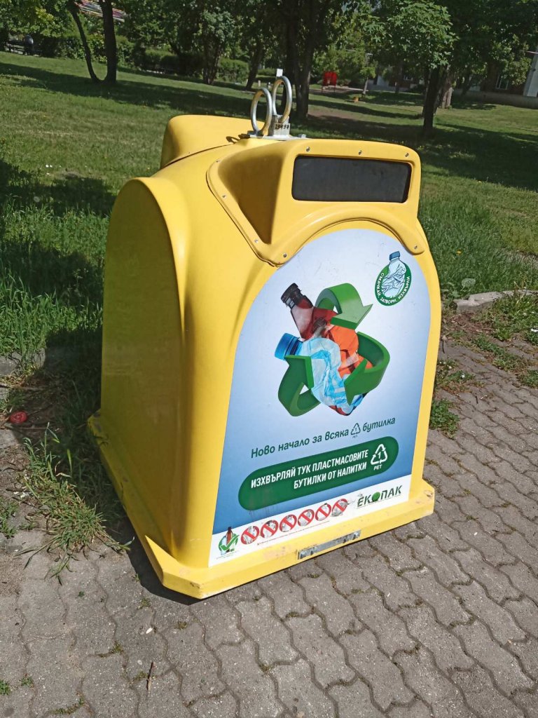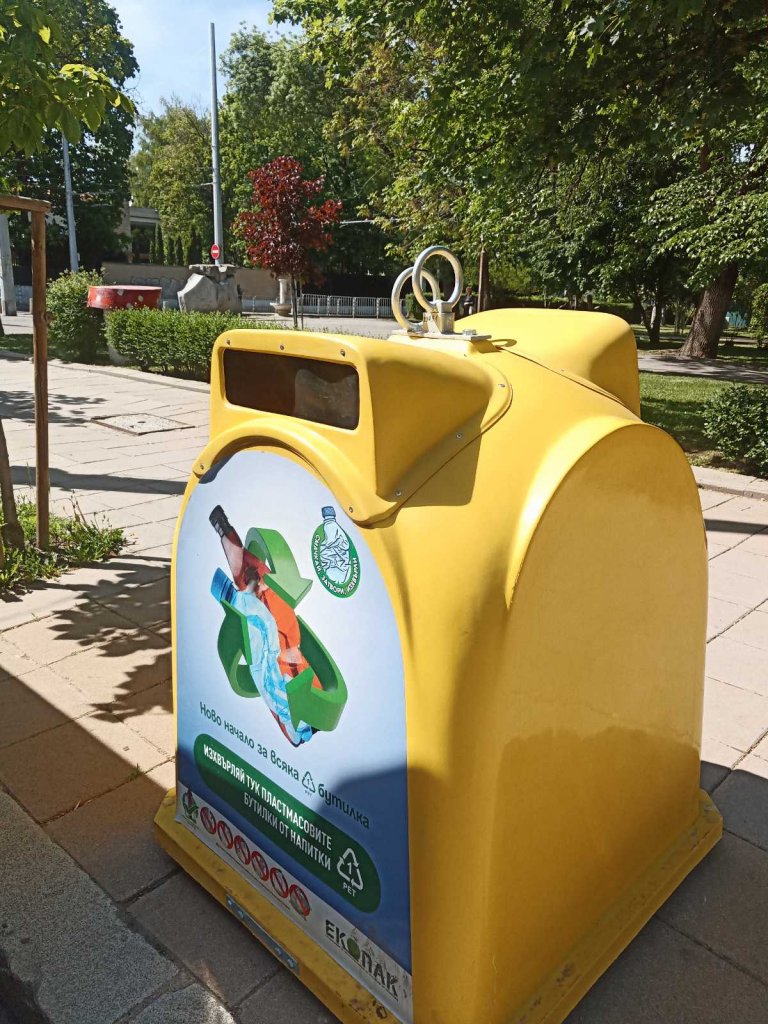 Нов вид жълти контейнери само за пластмасови РЕТ бутилки с вместимост до 3 л. се появиха в софийски паркове, градини, алеи и други обществени места. За инициативата съобщи Столичната община преди десетина дни, а според Екопак Бългaрия, чието лого забелязахме на един от новите контейнери, те ще подготвят условията за постигане на европейските цели - най-късно до 2029 година у нас да се събират 90% от РЕТ опаковките за напитки и да се влага най-малко 30% рециклиран материал в новите бутилки.