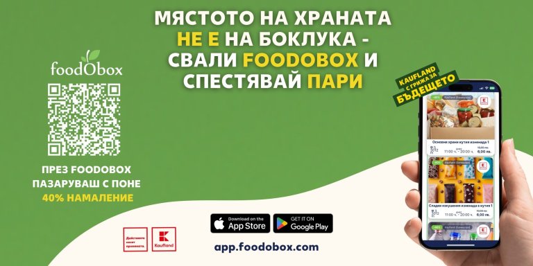 Срещу разхищението на храна Kaufland и платформата Foodobox предлагат елегантно и вкусно решение - кутии-изненада. В тях се събират качествени пакетирани продукти с наближаващ срок на годност (поне 3 дни), които се предлагат със средно 47% намаление чрез мобилното приложение. Клиентът не знае какво точно ще получи, но гарантирано ще си тръгне с нещо полезно, на достъпна цена, а и ще "спаси" храна от боклука.