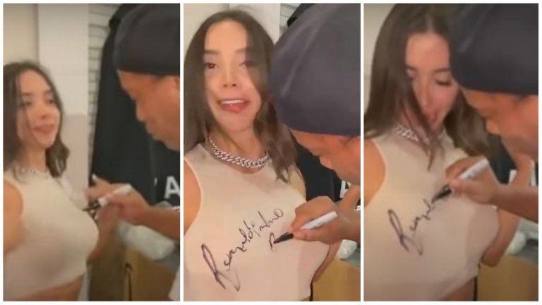 Същата "тежка" участ споходи и Роналдиньо, когато бе притиснат от фенка, искаща автограф върху сериозно прозиращото си потниче. И кавалерът на "Златната топка" за 2005 г. нямаше как да откаже. Въпреки че се е подписвал десетки хиляди пъти, това може би е най-странният автограф, който е давал някога.