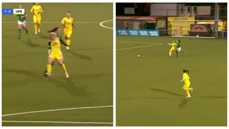 Вместо първа да стигне до топката и да я изчисти или да я върне към вратарката, защитничката на Украйна блъсна умишлено запътила футболистката на Северна Ирландия Сара Макфадън.