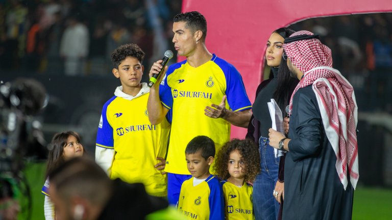 37-годишният португалец бе представен като нов играч на Ал Насър в присъствието на приятелката си Джорджина Родригес и петте си деца, след като подписа договор за две години и половина, според който ще получава по 200 милиона евро на година (по 75 млн. евро на сезон като футболист, а останалото се допълва от рекламни договори и от ролята му на посланик за домакинството на Саудитска Арабия за Мондиал 2030).